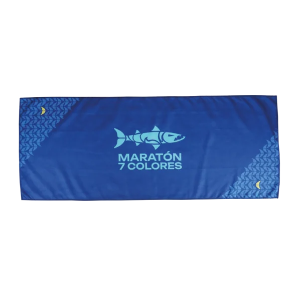 La toalla oficial en azul intenso de la Maratón 7 Colores refleja la energía del mar en constante movimiento, ese impulso que inspira cada entrenamiento en la isla. Su color profundo conecta con la fuerza del océano y convierte esta pieza en un accesorio ideal para acompañarte en tus momentos de actividad y descanso.